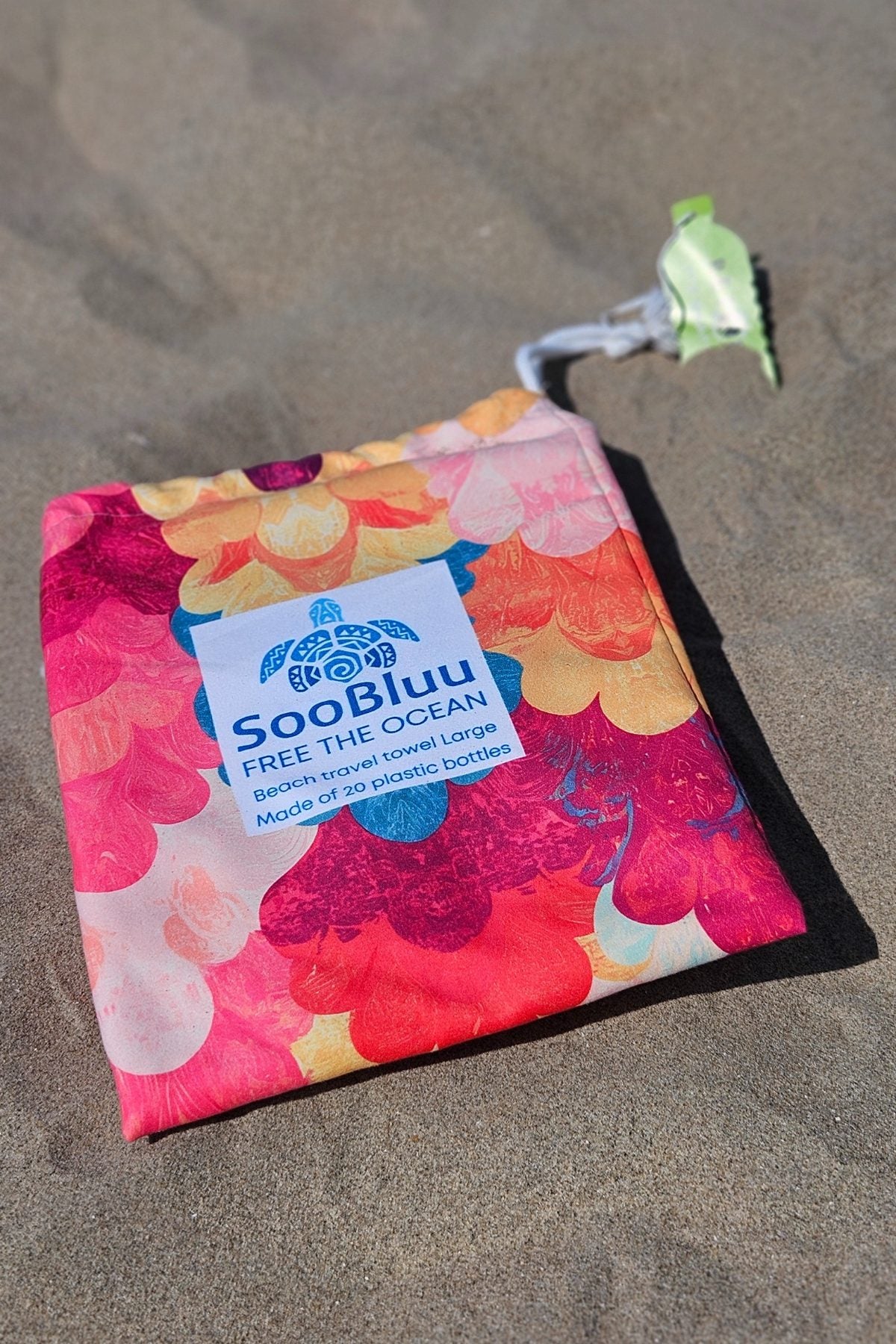 A beautiful quick-drying travel towel or beach towel with a unique and eye-catching print- perfect for both women and men. By purchasing this SooBluu towel, you actively contribute to the fight against ocean plastic pollution, as it is made from 20 recycled plastic bottles. You also support Local Ocean Conservation, as 5% of our profit goes to this foundation to help protect sea turtles. Features:
